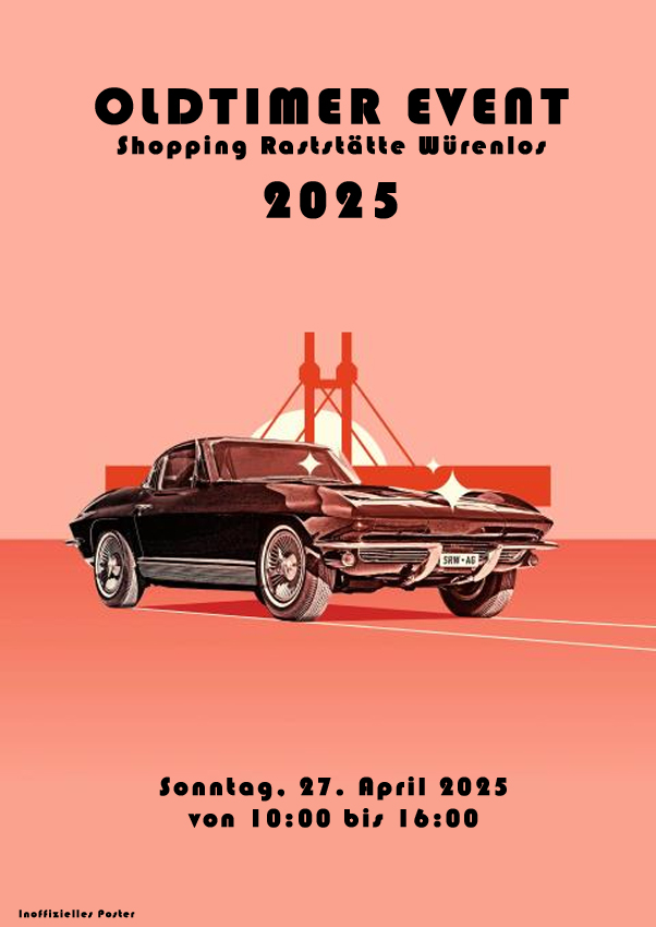 Concentration annuelle de voitures anciennes Le centre commercial Shopping Raststätte a le plaisir de vous convier à leur 4ème concentration de voitures anciennes le dimanche 27 avril 2025 à Würenlos dans le canton d'Argovie. Cet événement réunit chaque année de plus en plus de propriétaires de véhicules anciens pour le plus grand plaisir de passionnés de belles mécaniques. Restauration dans le centre commercial ouvert. Entrée gratuite.